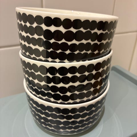 Myydään 4kpl Marimekon siirtolapuutarhalautasia. Käytössä olleet, mutta kunto hyvä. Yhdessä lautasesta halkeama (kuva). 4kpl yht 15e