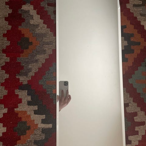 Perfectly sized mirror for a bedroom wall or corridor. Simple shape and design. In good condition, no scratches or stains. Just a bit old and with a diy hanging system but does the job! Come see it and pick it up if you like it : )