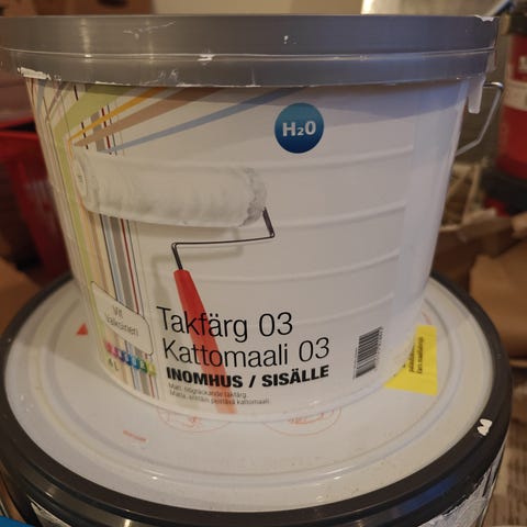 Maali avattu 8/25. Säilytetty viileässä tiivistä suljettuna ja valolta suojattuna. Sopii hyvin esim. röpelökaton paikkamaalaukseen.