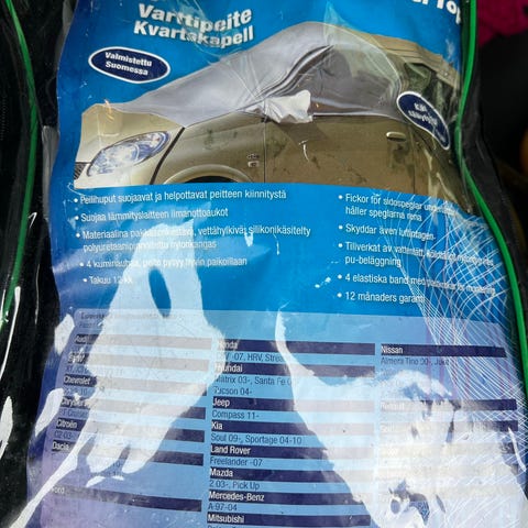 - suojaa lumelta, pölyltä, lialta, pihkalta, ym