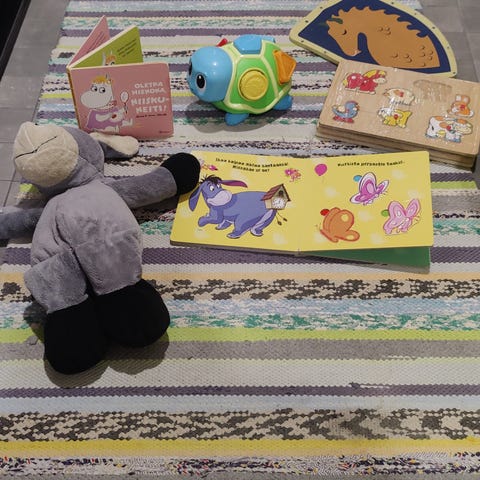 Annetaan korjaustaitoiselle kiikkuva lammas. Takajalat irronneet alustasta ja ei pysy ruuveilla. Muuten toimiva ja ehjä.