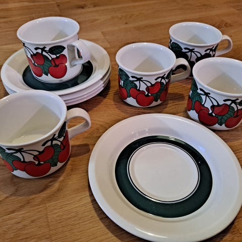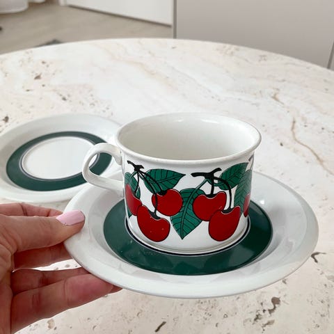 Myydään hyväkuntoinen Arabian Kirsikka kuppi ja lautanen.