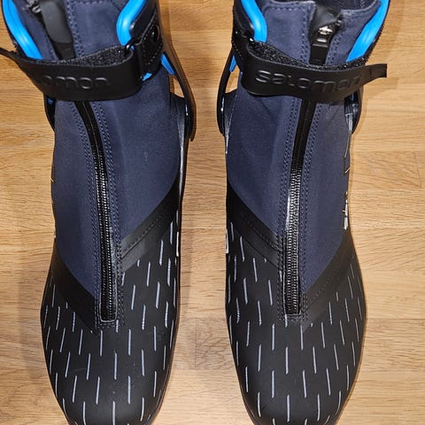 Salomon RS10 Nocturne miesten luistelumonot, koko EU 46 (UK 11, US 11,5, 29,5 cm). Väri musta/sininen. Monot on tarkoitettu luisteluhiihtoon ja niissä on RS-sarjan tukeva rakenne. Päällinen on vetoketjullinen ja suojattu läpällä, joka auttaa pitämään lumen ja kosteuden poissa. Kiristys tapahtuu sisäisen nauhoituksen avulla.