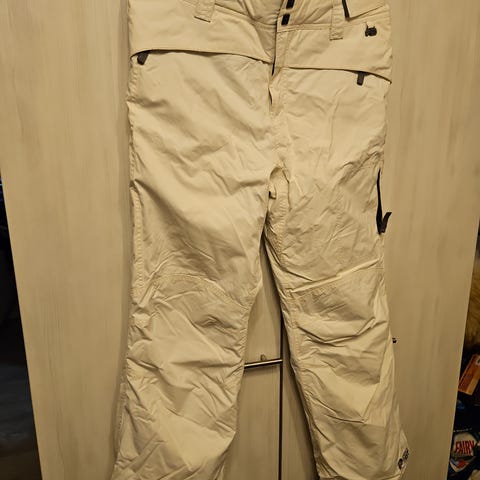 Housut ovat yksiväriset ruskeat, lahkeissa vetoketjut ja lumilukot.