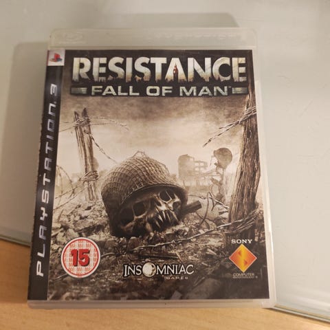 Resistance: Fall of Man on Playstation 3 -peli. Pelin ikäraja on 18 vuotta. Peli on koteloitu PS3-levyversio. Ohjekirja boksissa.