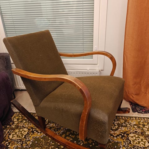 Pellavakangas, jalat puuta. Selkänojan asento säädettävissä parin pykälän verran