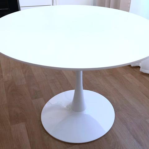 Ikean pyöreä valkoinen ruokapöytä. Irrotettava jalka.