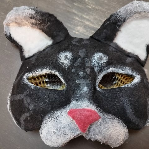 11kpl väriteltyjä vähän leikittyjä Therian maskeja. Kolmannen kuvan maski on silmien verkko-osaa lukuunottamatta ostettu valmiina. Muut itse muokkailtuja. Kaikissa kuminauhat. Kaikki kerralla.
