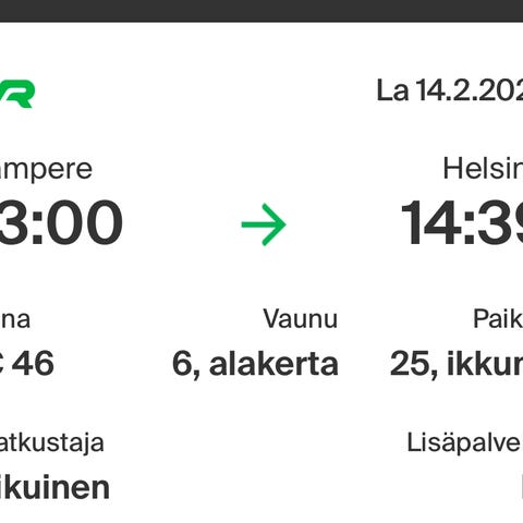 14.2. Junalippu Tampere–Vaasa aikuiselle