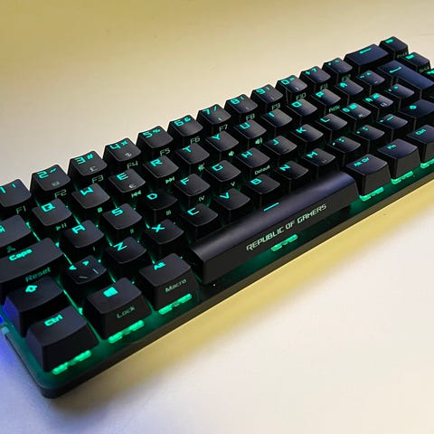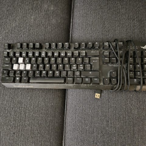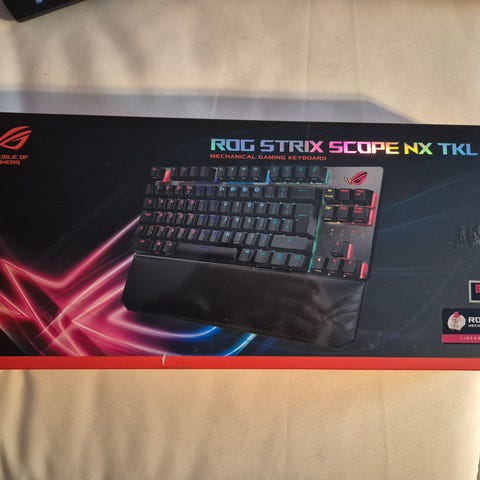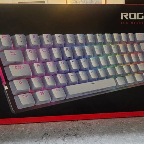 Tästä aivan loistavassa kunnossa oleva ladattava ja langaton pelinäppäimistö ROG RX red- ja RX blue -optisilla ja mekaanisilla kytkimillä.