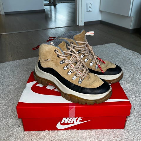 GANT Cazidy -malli, joka on rouhea ja retkeilyhenkinen tennari/nilkkuri. Tässä mallissa yhdistyvät tennarin mukavuus ja vaelluskengän ulkonäkö, ja sille on ominaista paksu, kaksivärinen ja profiloitu ulkopohja.