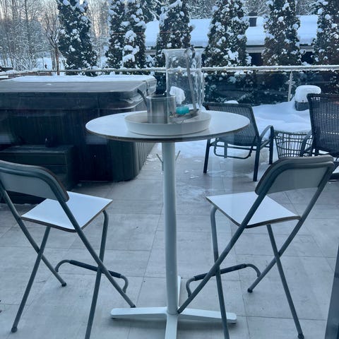 Myytävänä Norråkerin pöytä ja kaksi Nilsolle jakkaraa. Levyn päällä pari painaumaa(kuvassa näkyy). Vain nouto.