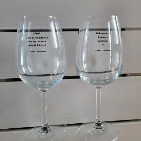Valmistajan mukaan lasi soveltuu sekä puna-, valko- että kuohuviinille.