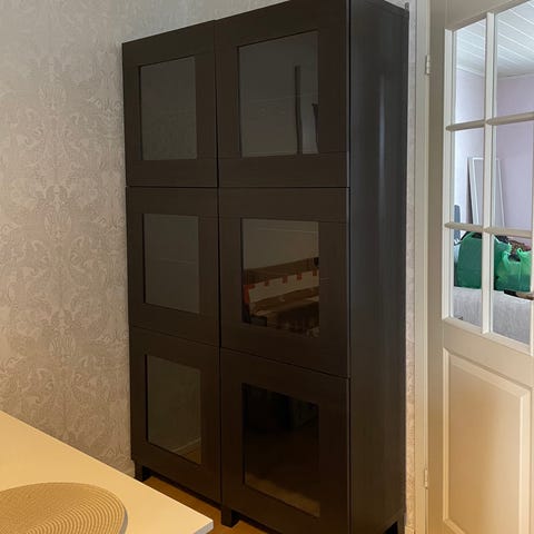 Myydään kuvissa näkyvä Ikean Bestå -sarjan vitriinikaappi. Kaappi on useamman vuoden vanha, mutta alemmat ovet uusittu myöhemmin. Stubbarb-jalat. Sisällä kaapeissa yksi hyllylevy kunkin oven takana.