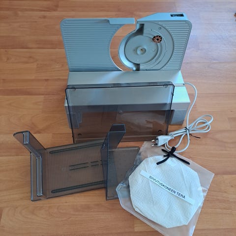 Hyväkuntoinen viipalointikone, vanha mutta toimiva. Kokoontaitettava menee pieneen tilaan