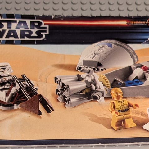 Komea Star Wars -teeman hyökkäysvaunun sekä kolme droidia sisältävä setti vuodelta 2010.
