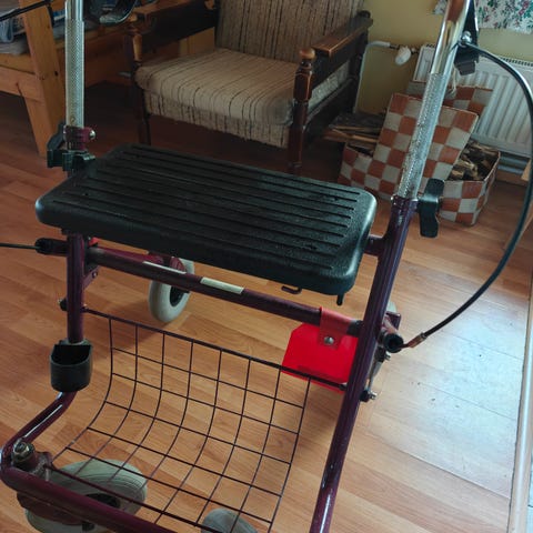 Vähän käytetty, kuin uusi, näppärä rollaattori. Rollaattori käytetty vain sisällä, joten ei kulumia. Sopii todella hyvin myös ulkoiluun. Ei ole kiikkerä, vaan tukeva. Korkeuden säätö helppo 77-90 cm, leveys 55 cm, istuinkorkeus 52 cm. Saa helposti kasaan esim autoon, kuljetusta varten. Helppo liikutella. Saksalainen. Nouto, käteinen