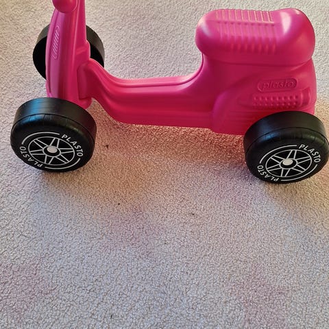 Plasto klassikko potkumopo -meillä ollut vain sisäkäytössä.., väri pinkki.
