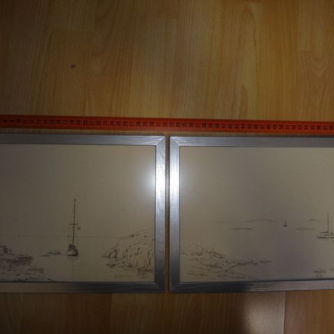 Taulu, jossa on esitetty satamamaisema. Kuvassa näkyy suuri rakennus veden äärellä, venevaja sekä useita veneitä rannassa. Värimaailma on pääosin sinisen ja vihreän sävyinen, ja etualalla on yksittäinen vene vedessä tai rantavedessä. Taulu on kehystetty tummalla paspiksella, joka rajaa kuvan selkeästi. Sopii esimerkiksi sisustuselementiksi seinälle tilaan, jossa halutaan merellinen tai rauhallinen maisemakuva.