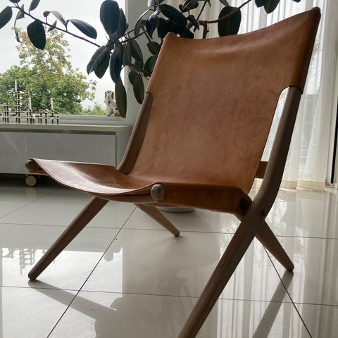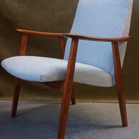 Myynnissä kuvien täysin kunnostettu nojatuoli, Olli Borgin askolle 1950-luvulla suunnittelema Montex/2427 nojatuoli.