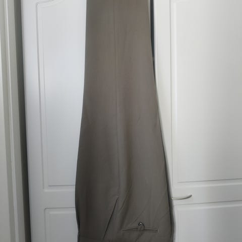 Miesten suorat housut, väri harmaa. Materiaali: 58 % polyesteri, 40 % villa, 2 % elastaani. Vuori 100 % polyesteri. Koko 31–32. Housuissa on klassinen suora malli ja vyötäröllä vyölenkit. Soveltuvat arki- ja juhlapukeutumiseen.
