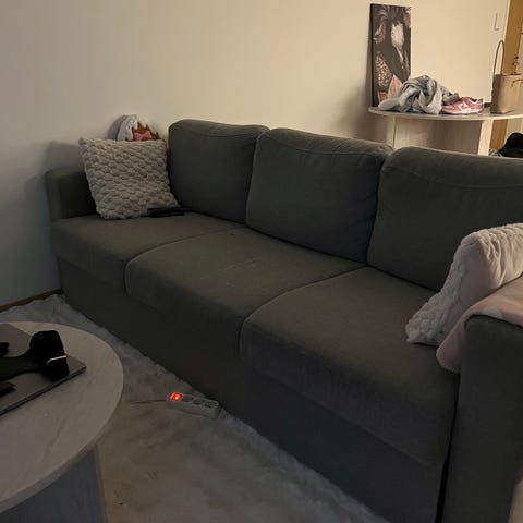 Myydään harmaa levitettävä vuodesohva. Divaaniosassa säilytyslokero. Kunto hyvä. Koiratalous.