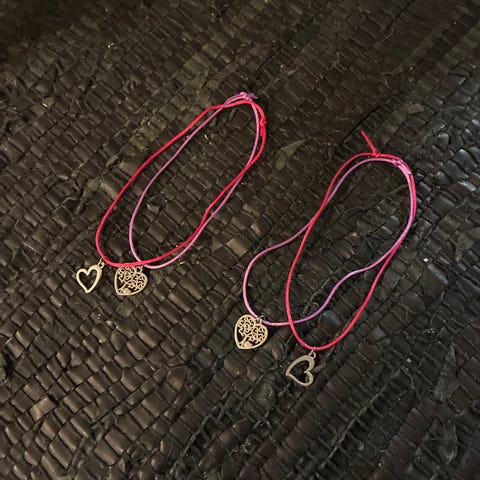 Pinkki violetti hopea sävyinen sydän korupuu käsiketju / rannerengas / koru 4kpl