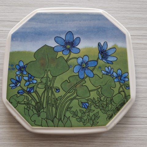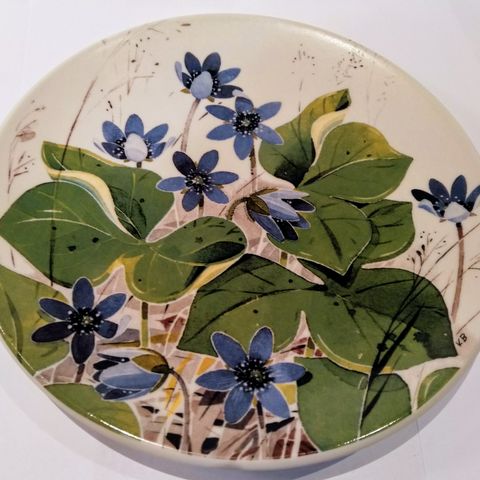 Arabia Sinivuokko Hämeen maakuntakukka seinälautanen.Design Toivo G Utriainen.