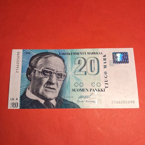 Kohtalaisen kuntoinen 20 markan seteli vuodelta 1993.