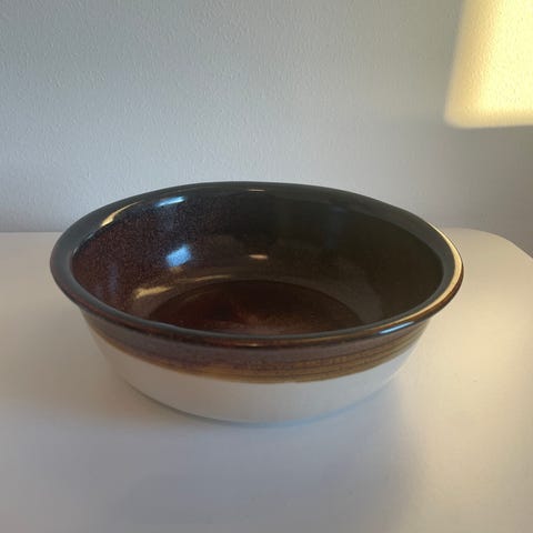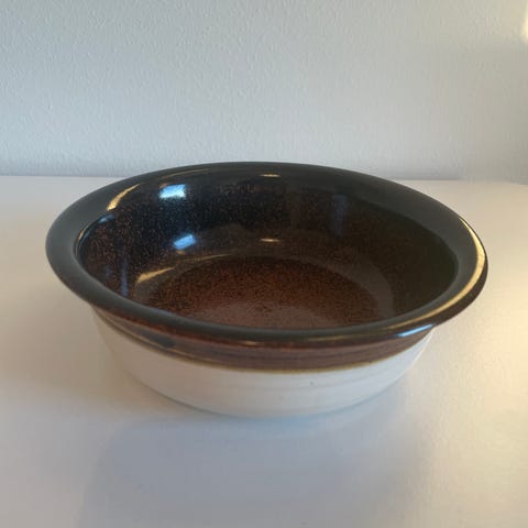 Myydään Kermansaven Heinä-sarjan kulho. Halkaisija 21 cm ja korkeus 9 cm.
