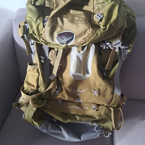 Uudenveroinen Osprey Kestrel 58 rinkka. Rinkalla ei ole retkeilty, vaan se on toiminut vain "matkalaukkuna" yhdellä juna - auto - juna matkalla.