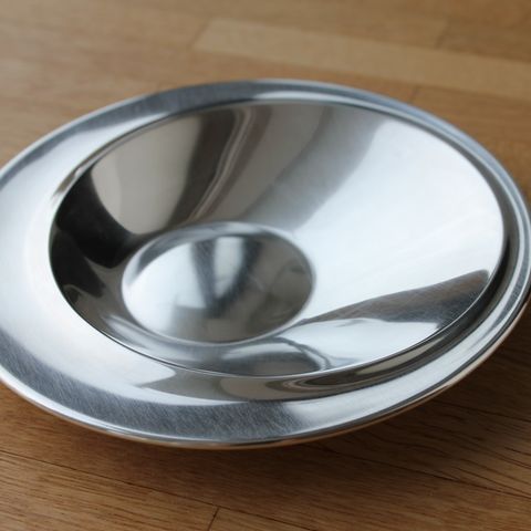 Pohjassa lahjan antajan ja saajan tietoja. Koko: halkaisija noin 18,5 cm. Korkeus 7 cm.