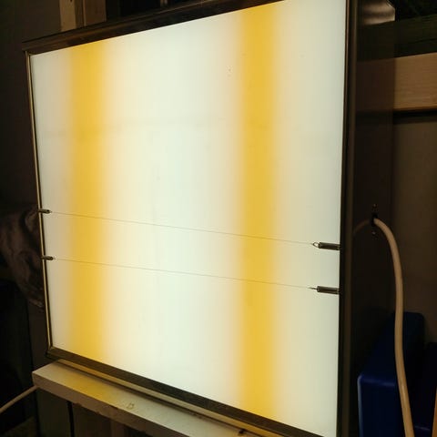 Loisteputkista kaksi palanut. Kuva putkesta, josta käy ilmi loisteputken tiedot ja pituus.