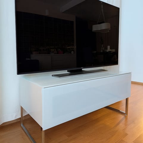 Norstone Esse AV laitetaso kaupan. Palvellut hyvin useamman vuoden. Muuten varsin hyvässä kunnossa mutta alahyllyn lasisessa tasossa näkyy hieman hiusnaarmuja valoa vasten. Nämä eivät normaalissa käytössä näy.