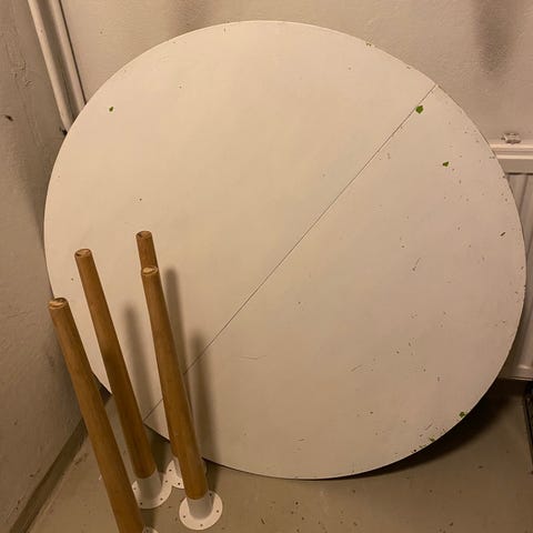 Myydään vintage pyöreä pöytä jatkopalalla. Halkaisija 110cm +35cm jatkopalaa. Korkeus 73cm.