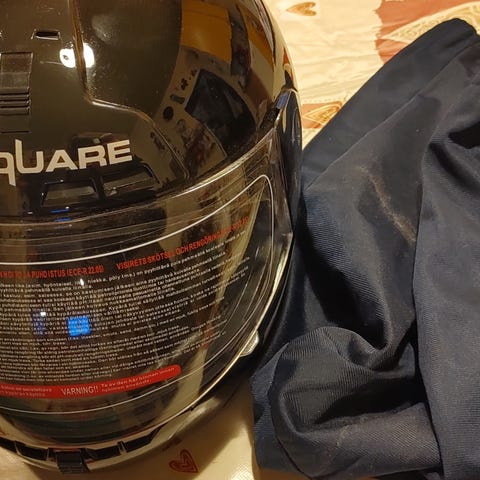 Sweep kypärä, väri mattamusta. Koko S ja kahdet ohuet ajohanskat. Pyörä ja vaatteet myyty viime kesänä pois niin ei enää tarvetta näillekään.