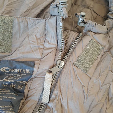 Myyn myös Carinthian Tropen makuupussia toisessa ilmoituksessa, mikäli puolustusvoimien kahden pussin taktiikka kiinnostaa. Kun nämä 2 pussia laitetaan sisäkkäin, päästään alle 20°C pakkasten kestävyyteen.