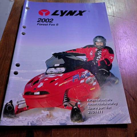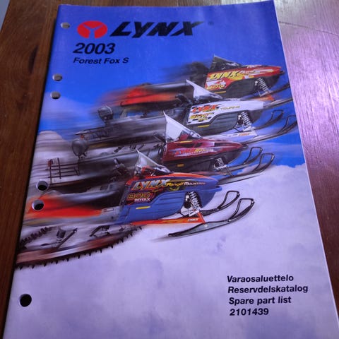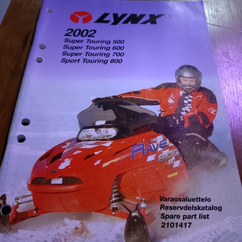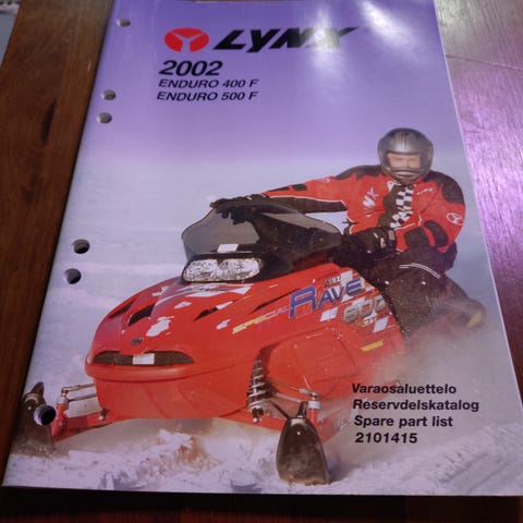 Hyväkuntoinen, suomenkielinen varaosakirja koskien Lynx Safari 400 ja Explorer 500 moottorikelkkoja.