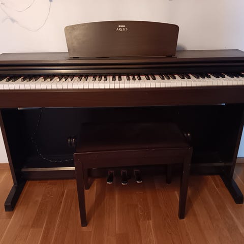 Oikein hyvässä kunnossa oleva sähköpiano ja penkki. Kuulokkeet saa liitettyä johdolla.