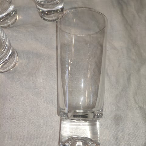 Myydään Iittalan klassisia mutteripohjaisia juomalaseja. Kirkasta puristelasia, paksu ja painava pohja. Ajaton malli, käytetty mutta siisti kunto, ei säröjä tai lohkeamia.