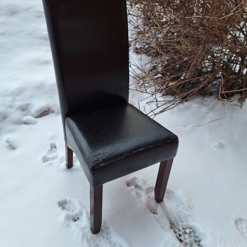Myynnissä 6 kpl nahkapäällysteisiä tuoleja yhteishintaan 30€.