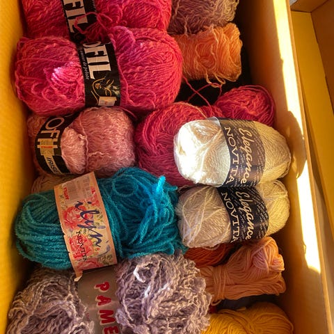 Useita vajaita keriä, mutta yhteensä paljon lankaa – riittää moneen projektiin.