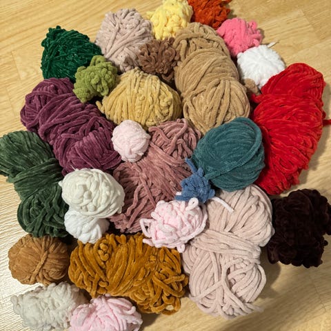 Myynnissä suuri erä pehmeää chenille-/samettilankaa.