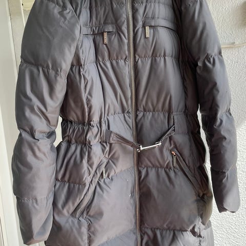 Michael Kors naisten untuvatakki, koko M. Pitkä, musta talvitakki, jossa etuvetoketju ja nappikiinnitys. Takissa on huppu, jossa tekoturkisreunus, sekä vetoketjulliset sivutaskut ja povitasku. Päällikangas on polyesteriä.
