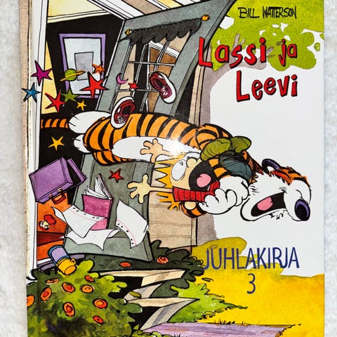 Kovakantinen suomenkielinen sarjakuvakirja, jossa Bill Wattersonin Lassi ja Leevi -strippejä koottuna albumimuotoon. Sarjoissa on edetty vuoteen 1994.