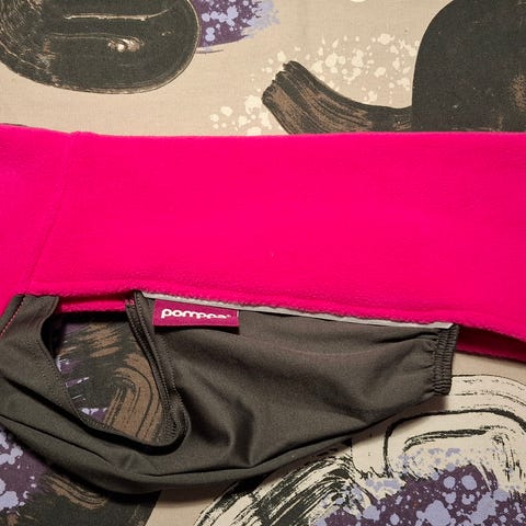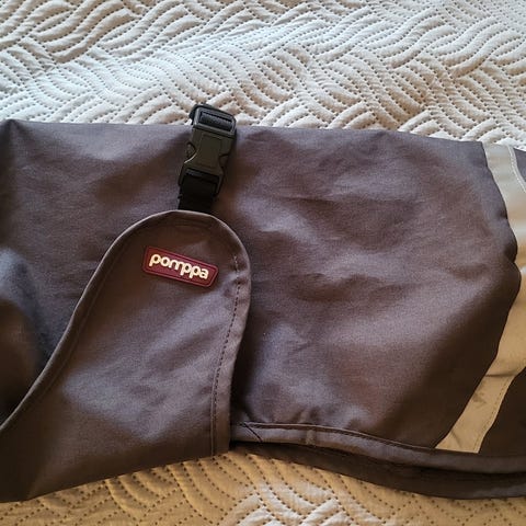 Keltainen Perus Pomppa, koko 37. Pesty ja hyvässä kunnossa. Niskassa aukko hihnalle. Selässä tehty, ommeltu aukko valjaille. Hyvä heijastin.
