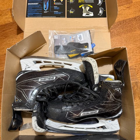 Hyvässä kunnossa olevat täysin toimivat huipputason Bauer 2S Pro luistimet. Mukaan tulee myös toiset pohjalliset, mutta teriä ei enää löydy.