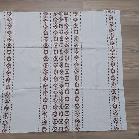 Hapsu pöytäliina. Koko ilman hapsuja n. 82cm x 82cm. Hapsujen pituus 15cm. Nouto, postitus tai toridiili. Halutessasi samaan toridiili- / postipakettiin voi kerätä useamman tuotteen ja maksaa ne kerralla, niin tulevat kaikki samassa paketissa. Laita viestiä torin kautta, jos haluat ostaa samaan pakettiin muuta.