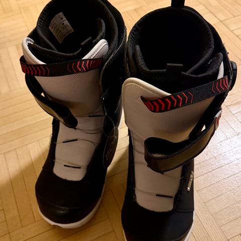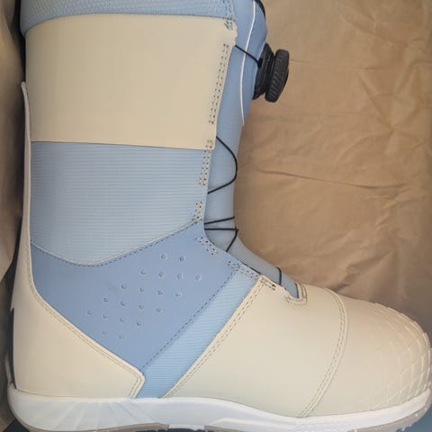 Burton Starstruck Boa -lumilautakengät naisille. Ovat hiipuvan harrastuksen takia jääneet kaappiin. Kengän koko on 39 (EU) / 7,5 (US) / 5 (UK) ja sisäpituus 24,5 cm. Kiristys tapahtuu Boa-järjestelmällä, joka säätää nauhat tasaisesti yhdellä säätönupilla. Sopii hyvin aloittelijan ja keskitason laskijalle.