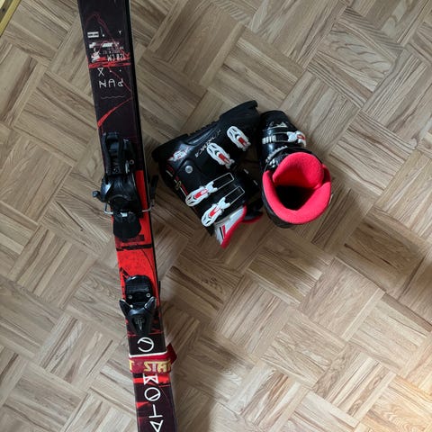 Atomic Race laskettelusukset siteillä. Pojalla olleet ensisuksina eivätkä montaa kertaa rinteessä käyneet.